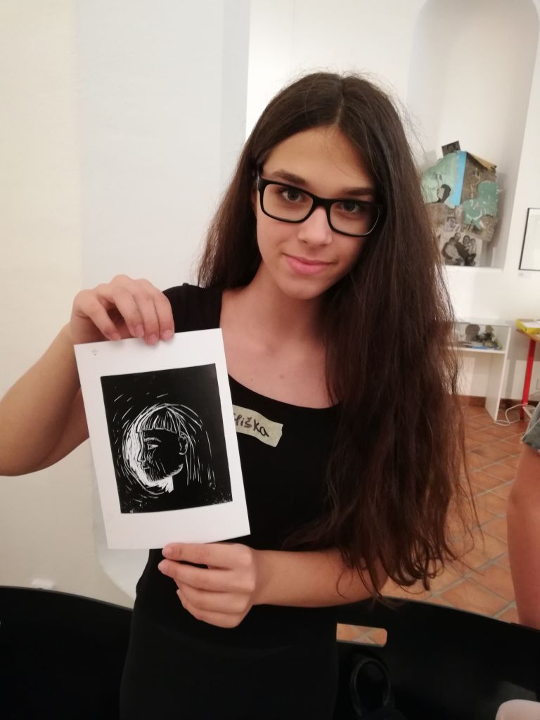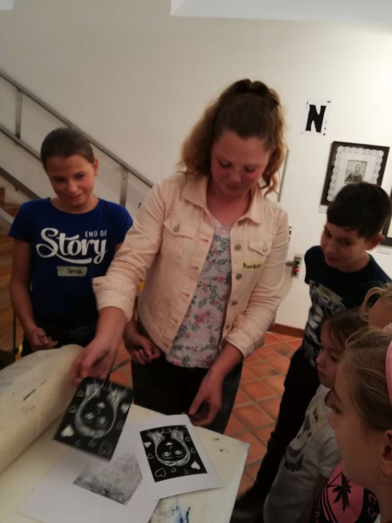 Žáky zaujala nejen barevná díla, ale také grafická dílna, kde si mohli vyrobit vlastnoruční tištěnou pohlednici. Obrázky se povedly a do Domu umění jistě brzy opět zavítáme na další zajímavou animaci.