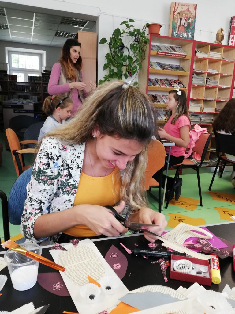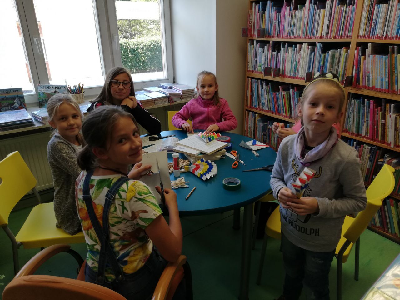 Velice rádi jsme přijali pozvání Městské knihovny Hradec nad Moravicí na tvořivou dílničku s podtitulem recyklace. Paní knihovnice nám připravila program, kterak by se daly využít staré knihy a vytvořit si z nich pěknou dekoraci. A tak se v knihovně stříhalo, lepilo a dokonce i šilo. Děti domů odcházely nadšené s andělíčky, sovičkami z papírových pytlíků, vějířky i skládanými rozetami.