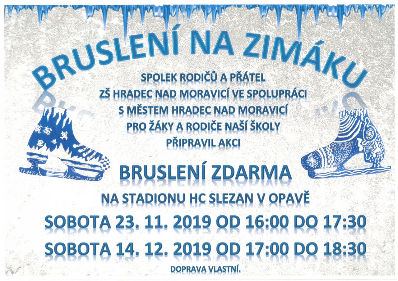 Na den 19. října 2019 se opět podařilo Spolku rodičů a přátel ZŠ Hradec nad Moravicí zajistit pro žáky a rodiče naší školy bruslení zdarma na stadionu HC Slezan v Opavě.