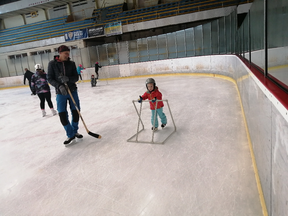 Protože si letošní podzim s námi doslova hraje a venku jsou letní teploty, zřejmě i proto se nás skalních příznivců bruslení sešlo nyní opravdu velmi málo. Nicméně těm, co přijeli to nevadilo, neboť si mohli dát v klidu v části stadiónu hokejový match, do kterého se zapojili jak kluci, tak i tatínkové!