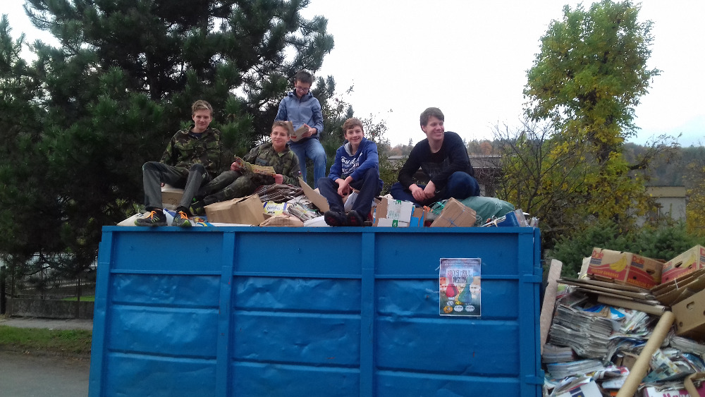 Jiří Tichavský, Ondřej Polášek, Lukáš Szczepański, z 9. třídy přiložil ruku k dílu i Ondřej Konečný a z nižšího ročníku Lucie Ignácová a Daniel Drozd z 2. B a Martin Sonnek z 3. A. Tito žáci za svou pomoc při sběru papíru dostali pochvalu.